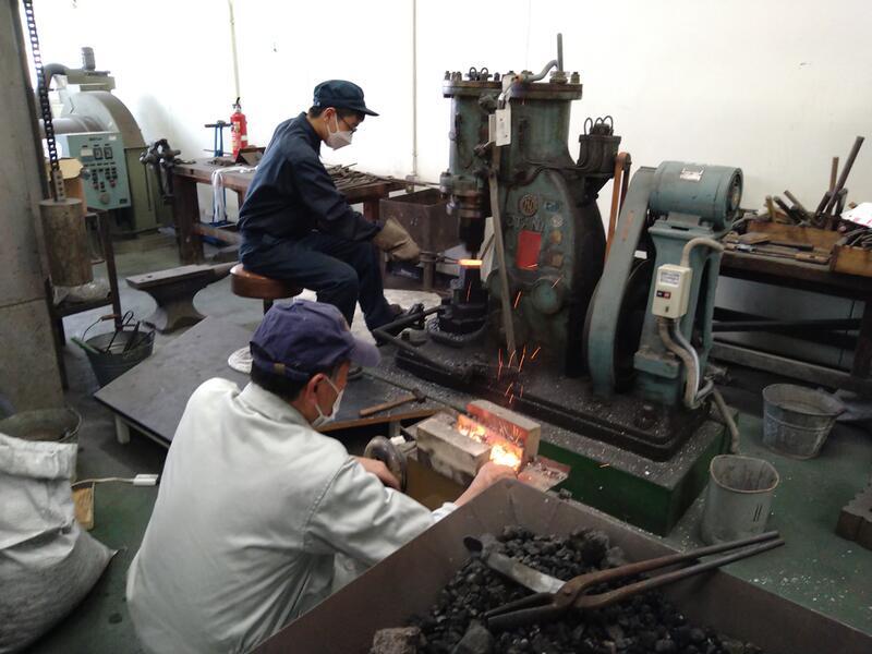 | ■鍛造 鋼を加熱してハンマーを打ち込んで加工をします。 |