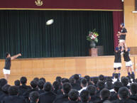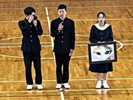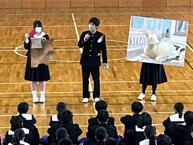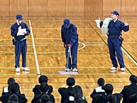 一覧へ 2025/04/10 部活動紹介 投稿日時: 2025/11/14 システム管理者 4月10日(木)の5~6限の時間に1年生のための部活動紹介がありました。運動部・文化部の各代表がそれぞれ自分たちの所属している部の活動の紹介をしました。普段の練習の様子も実演で紹介する部活動もありました。