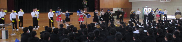 4月10日(木)の5~6限の時間に1年生のための部活動紹介がありました。運動部・文化部の各代表がそれぞれ自分たちの所属している部の活動の紹介をしました。普段の練習の様子も実演で紹介する部活動もありました。