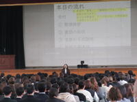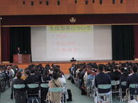 3月23日(月)、午後から令和8年度新入生の入学説明会が体育館で行われました。受付後、各科ごとに着席し、書類の回収や各部による入学前の説明がありました。体育館で説明を聞いたのち、教科書販売や制服の採寸や実習服の購入などがありました。次に新入生が登校するのは、4月3日(金)に行われる健康診断の日になります。