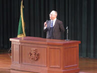 その方は、「姫工生には、起業したり、その会社の中で上の立場に立っていたり、大きな目標を持って社会人として活躍してほしい」と。「大きく成長し、活躍して、社会に、またこの姫路工業に対して貢献できる人材となってほしい」とおっしゃられていました。その卒業生の方の大きな貢献として西門の設置です。卒業生の方がそういう力を注いでいただいてるから、今みんなが勉強や部活動ができる、この姫路工業高校があるんだということとともに、また、そういう活躍をされた卒業生の方の思いを偲んでいただけたらと思います。