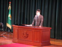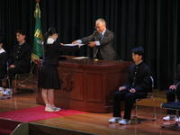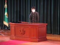 「空手道部の皆さん、全国選抜大会出場、誠におめでとうございます。心からお祝いを申し上げます。それぞれが大会で最高の結果を出せるように取り組んでいるところだと思いますが、当然、勝って欲しいし、頑張って欲しいですが、礼説、正義感、道徳心、勇気、これだけは、どこの都道府県の代表にも負けないような思いと気持ちを持って、全力を尽くしてほしいと思います。