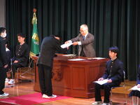 全国大会に出場する皆さんを姫路工業の誇りとして、心よりここに全員で応援をしていますので、頑張ってください。」