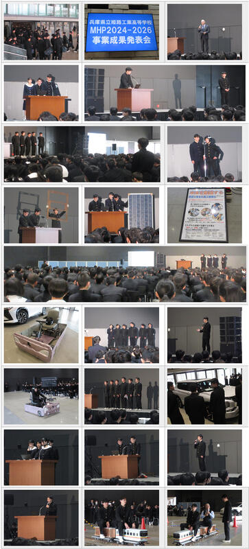 一覧へ MHP成果発表会 投稿日時: 02/18 システム管理者 2026年1月26日(月)、アクリエひめじにてMHP成果発表会が行われました。MHP事業とは地域における産業界等と専門高校の連携体制構築を通した産業人材育成のための教育充実を目指す取り組みです。昨年度から始まった取り組みも2年目となり、今年度は本校の各科と洲本実業、兵庫工業の生徒達と合わせて9団体の発表を行いました。各科の特色を生かしながら代表生徒が発表し、質疑応答も積極的に飛び交う発表会となりました。