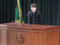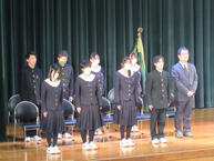 「本日はこのような会を開いていただき、本当にありがとうございます。兵庫県を代表して全国大会に出場することになりました。日頃の練習の成果や、これまでの大会で培ってきた技術や演奏力を存分に生かしていきたいと考えています。この全国大会に関わってくださる方々への感謝の気持ちを忘れず、姫工生らしい規律ある行動を心がけ、良い結果を残せるよう全力で頑張ってまいります。応援よろしくお願いします。」