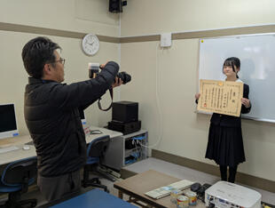 デザイン科3年生の中塚千遥さんが、公益財団法人こども教育支援財団が主催する第17回環境教育ポスターコンクールで内閣総理大臣賞を受賞しました。また、2025年11月9日には、東京で表彰式に参加し、表彰状が授与されました。授賞式後は環境教育シンポジウムにも参加しました。
