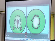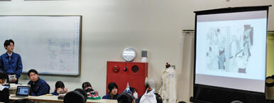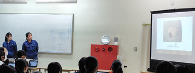 3年生は自分たちが制作した実際の作品を見せたり、プレゼンテーションソフトを使って簡潔にまとめた研究成果を一生懸命発表しました。
