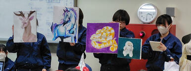 課題研究とは各自の興味や関心に応じて疑問に感じたことや深く追究してみたいことを通じて、各自でテーマを設定・研究し、その成果を発表するという取り組みです。この授業は3年生で行われ、デザイン科ではいくつかの大きいテーマが設定されており、その中から3年生が自分で選択して1年間通して研究・制作していきます。