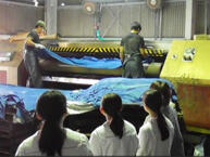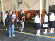 そのようなこともあり、サンテレビの「ひょうご発信」というテレビ番組より、地場産業である皮革を取り上げ、工場見学とレザークラフト体験をするという取材依頼がありました。工場見学では、革が製作される工程を見学し、レザークラフト体験ではブレスレットと小銭入れを作成しました。