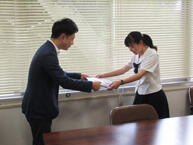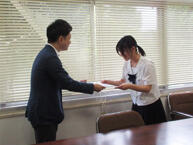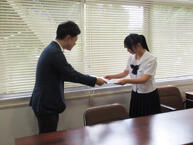 7月4日(木)には、本校にて赤鹿地所様から直接表彰状と副賞を贈呈していただきました。最優秀賞を受賞した蓑田さんのデザインしたラッピングバスは、6月下旬から姫路市内で運行されているそうです。