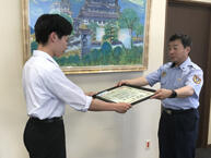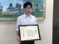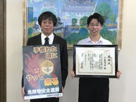 デザイン科に依頼をいただき、姫路消防局が市内で掲示している危険物安全週間のポスターの採用者に3年生の小暮周晴くんの作品が決まりました。また、5月21日(火)には、姫路市消防署で感謝状贈呈式があり、局長から直接感謝状を贈呈していただきました。
