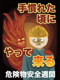 このポスターは仕事などに慣れてきて、気持ちが緩んできた時にケガや事故が起こるんだぞというのを表しました。全体的にかわいらしく親しみやすい表現を目指し、気持ちが緩んで慣れてきているという状況は危ないんだという怖いイメージも与えつつ、見た人がドキッ!とする作品を目指しました。このポスターを見た人がもう一回気を引き締めて仕事などに取り組むようになって欲しいです。