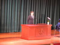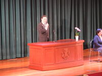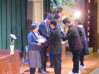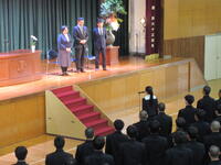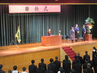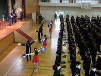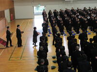 4月10日(金)、体育館にて昨年度まで本校でお世話になった先生方の離任式がありました。各先生方から2・3年生に向けてのお話がありました。生徒会長が生徒代表として挨拶があり、応援団によるエールで生徒たちによる校歌を披露しました。離任される先生方の今後ますますのご活躍を祈念しています!
