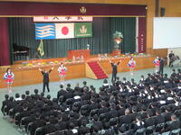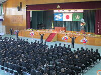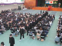 一覧へ 入学式 投稿日時: 04/09 システム管理者 令和8年度、第81回生入学式が体育館にて挙行されました。式の前には各HR教室で先輩たちが挨拶の仕方や椅子の座り方、礼の作法等を指導してくれました。 体育館では担任の先生方からの呼名に元気に返事をする新入生の姿が見られました。第81回新入生の皆さん、ご入学本当におめでとうございます!