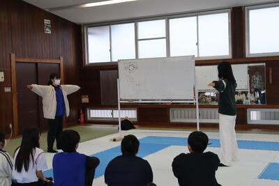 先週に引き続き『アートで躍動 Z世代文化部応援プロジェクト』の第2回目の練習会を、本校武道場で前回と同じく白井博之先生を講師にお迎えし、今回は姫路東高校演劇部と合同で行いました。