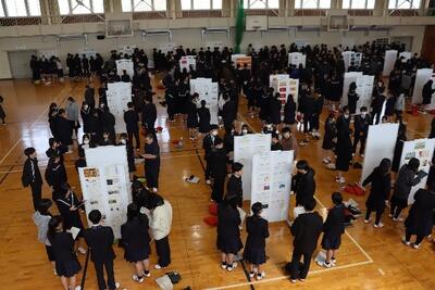 3月9日(月)、本年度の探究の成果を発表する1・2年合同発表会を行いました。