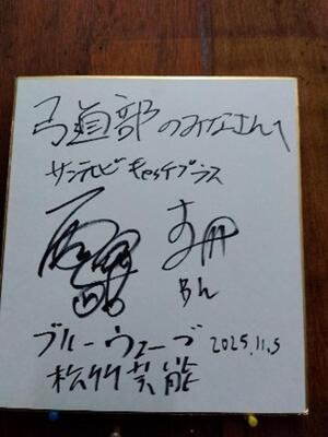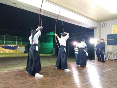 緊張しながらも、お笑い芸人ブルーウェーブさんとのやり取りの中で、本校弓道部の魅力をしっかりと伝えることができました。