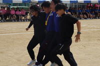 昨年までは陸上競技場で行われていたため、陸上競技種目が多くかったのですが、生徒会や体育科教員が、生徒全員が参加できるようバラエティーに富んだ競技を準備しました。また、観覧席も近いことから生徒たちの応援もより一層力が入り、クラスの勝利のために一致団結して競技に取り組んでいました。