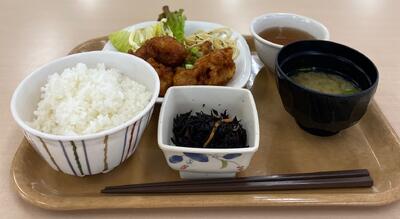 | 日替りメニュー | 500円 | わかめうどん・そば | 350円 | 唐揚げ(2個入) | 160円 | ||
