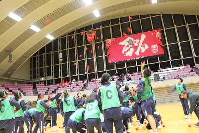 10月28日(火)、ヴィクトリーナ・ウインク体育館(姫路市中央体育館)で行われました。令和3年度につづいて3回目の会場です。生徒会や体育委員、そして放送部メンバーが準備から当日に至るまで関わってくれました。特に生徒会は、夏休みから新種目(障害物リレー、台風の目)を考え実行してくれました。