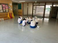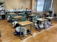 この訓練は、地震発生時に自分の身を守るための基本行動「まず低く・頭を守る・動かない(Drop・Cover・Hold On)」を身に付けることを目的としています。放送の合図に合わせて一斉に安全行動をとりました。生徒たちは、教師の声かけに耳を傾けながら、落ち着いて机の下に入ったり、体を丸めて頭を守る姿勢をとったりするなど、真剣に取り組んでいました。