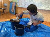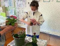 講師の田寺様から、パンジーやガーベラなどの花の説明と、植え方のコツを教えていただきました。春を先取りしたような色とりどりの苗が並んでいる様子を見て、生徒たちからは「きれい!」「かわいい!」と歓声があがっていました。説明の後には、プランターと花を選び、教室に戻るといよいよ寄せ植えのスタートです。土を入れる手元は真剣そのもの。「こぼさないように、丁寧に」と、プランターの半分まで慎重に土をいれていきました。一番の緊張の瞬間は、苗をポットから出すときでした。「そーっと、大事に」。この合言葉を胸に、繊細な茎や根を傷めないよう、苗を移し替えていました。