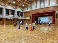 他学年のクラスの友だちとペアになり、棒を2本持って協力しながらボールを運びました。相手のスピードに合わせることがポイントです。途中でボールが落ちてしまっても、諦めずに最後まで運び、次のペアへバトンタッチし、黄色チームが優勝しました。