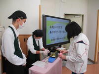 今回(2月10日)は、こうした地域との交流を通して身に付けてきた学びを校内でも生かしていく取組として、中学部3年生を招いた交流を行いました。実際の活動の様子を紹介したり、関わりの中で大切にしていることを伝えたりすることで、中学部の生徒にとっては、高等部の学びや将来の姿を具体的にイメージする機会となりました。また、高等部の生徒にとっても、自分たちの活動を振り返りながら伝える機会となり、活動の定着や活動の意義を再確認する時間となりました。