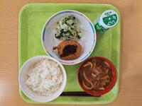 ぶた肉のコロッケ ほうれん草とたくあんのごまあえ