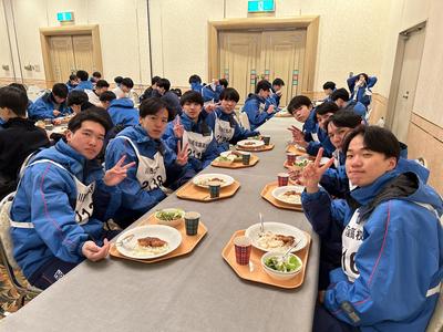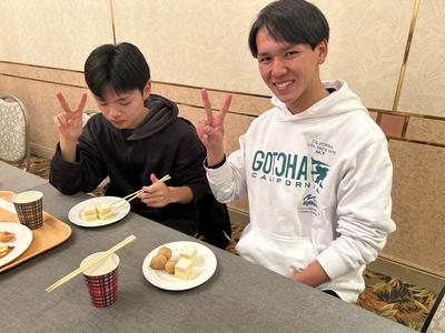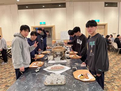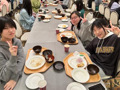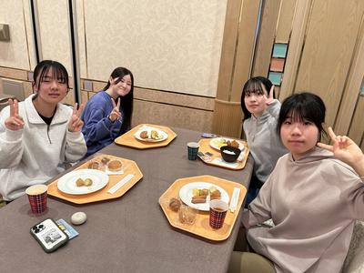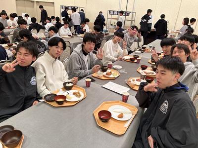 午前の実習を終え、食事会場に向かいます
