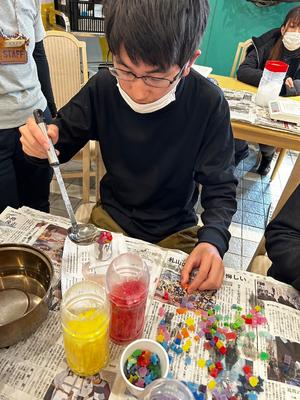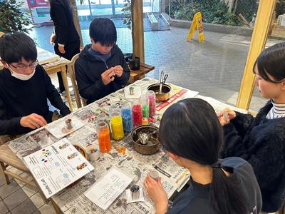 スキー・スノーボード実習に参加できない生徒がガラス工芸の実習に取り組みました