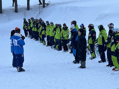 修学旅行委員の進行でスキースクールの代表の方、ホテルの代表の方からの挨拶の後、生徒代表からお礼の言葉です