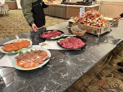 ステーキにカニ、いくら丼が並びます