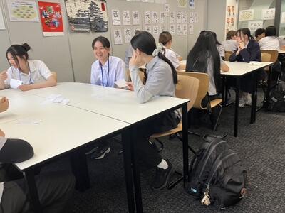 I had a Japanese class with Ms.Sydney and year 10 students in the 1st period. In class, I gave presentation about Japanese culture, history, etc I participated in a Japanese class with Ms.Yamagauchi and year 10 students. The teacher gave us some questions that made us compete in a group outside the classroom. The question required us to go to different parta of the school, like the gym, the amphitheater or in front of the economy classroom.
