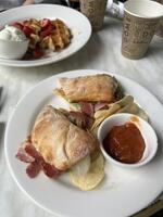 After swimming, we went to a cafeteria that is famous for great pies.I ate a beef cheese pie. It was delicious.
