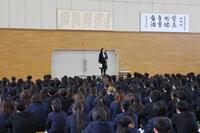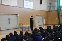 最後に海外武者修行の説明があり、令和7年度3学期終業式および全校集会を終了しました。