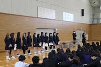 次に、来賓の方々の紹介と祝詞の披露がおこなわれました。その後、在校生代表が送辞を述べ、卒業生代表が答辞を述べたのちに、記念品贈答がおこなわれました。そして、卒業式歌斉唱、校歌斉唱をし、在校生・保護者の方々・ご来賓の方々・教職員の拍手の中卒業生が退場しました。