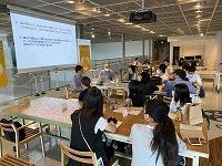 ここでは、北川さんによる講義を聴きながら、日本産食品の海外へのアプローチについてなどを考えた。私たちに身近な食品でも、どのようなプロモーションを行うことで立場や考え方の違う人に興味を持ってもらえるのかなど、話し合いながら新たな目線で見つめる事ができた。