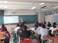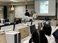 本校第一STEAM ROOMにおいて、普通科グローバルリサーチⅠ受講者(1年)15名を対象に、NGO団体PHD協会の佐久間隆氏とオクサナ・ロマノビッチ氏に来ていただき、「ウクライナ避難民支援の現状」をテーマに講義をしていただいた。初めに佐久間氏よりPHD協会の人材育成事業や住居支援活動等の外国人支援について説明があり、次にウクライナ避難民の状況と政府の対応について話をしていただいた。そして、主に兵庫県において実施されているPHD協会の避難民支援の現状、食料・生活・就労・日本語教室について写真を使って紹介をしていただいた。最後に、オクサナ氏よりウクライナの現状やご家族の避難生活等の話をしていただいた。ウクライナ情勢は遠い異国の話ではなく、身近な問題として生徒も真剣に話を聞いていた。