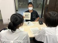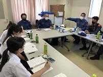 長田消防団第一分団詰所において、グローバルリサーチ受講生(2年)3名が、消防団及び女性消防団員について、神戸市長田消防団長の赤木氏はじめ、長田区で初めて女性団員となった第一分団部長の楯川氏、神戸市消防局長田消防署消防防災課消防第2係長の岡氏など8名からお話を伺った。生徒は次の質問を行い、回答を得た。1)消防団の人数、年齢層(消防団全体と女性)、2)消防団の人数が足りているのか、3)仕事内容や男女での役割分担、4)本業や家事の両立ができるのか、5)地域との信頼関係やコロナの流行での変化。また、ヒアリングのあとに、消防団が管理しているポンプを見学させていただいた。