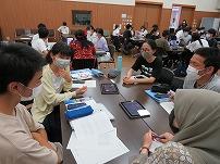 本校同窓会館ゆ~かり館において、本校創造科学科6期生(1年生)40名が兵庫教育大学と神戸大学の留学生10名と英語を用いて交流会を行った。まず、お互いの自己紹介を行い、アイスブレイクのゲームを行った。次に、本校生は「SDGsについての課題」をテーマにポスターを用いてプレゼンテーションを行い、留学生は「「SDGsに基づく自国が抱える課題について」をテーマにパワーポイントを用いてプレゼンテーションを行った。最後に各グループ代表が、セッションの報告を行った。生徒は楽しみながら積極的に留学生と交流することができたとともに、他国の魅力と課題を学ぶことができた。
