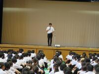 講堂では、最初に井上校長が次のように学校説明を行いました。