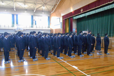 3年生は卒業後の新しい進路に向けての準備、1・2年生は自分の思いを確認して、それに向かって考え進むことを3学期の目標にすること、冬休み中はケガや事故トラブルがなく、来年が笑顔で良い年を迎えられるようにとメッセージがありました。