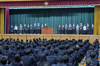 黒岩校長より、これから高校生活のなかで大事にしてほしいこととして、「相手のことを思いやり、コミュニケーションとしての "あいさつ” を大事にする」、「自分の "命”、まわりの人の "命" を大切に、みんなが健康で元気に過ごせるようにする」、「お互いに "前向き”で良い結果を目指す ”ポジティブ” な雰囲気づくりをする」、新入生を迎えて、県工全体で楽しくやっていきましょうと新2、3年生へのメッセージがありました。