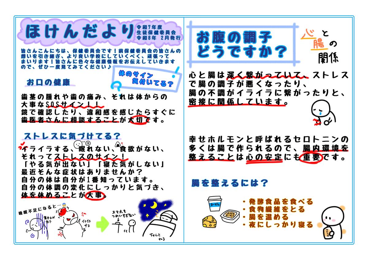 ほけんだより 全ての記事 全ての記事 アーカイブ 2026年2月 (1) 2026年1月 (0) 2025年12月 (1) 2025年11月 (0) 2025年10月 (1) 2025年9月 (1) 2025年8月 (0) 2025年7月 (1) 2025年6月 (1) 2025年5月 (0) 2025年4月 (1) 2025年3月 (1) 2025年2月 (0) 2025年1月 (1) 2024年12月 (1) 2024年11月 (1) 2024年10月 (0) 2024年9月 (1) 2024年8月 (0) 2024年7月 (1) 2024年6月 (1) 2024年5月 (0) 2024年4月 (1) 2024年3月 (0) 2024年2月 (1) 2024年1月 (0) 2023年12月 (1) 2023年11月 (0) 2023年10月 (0) 2023年9月 (1) 2023年8月 (0) 2023年7月 (1) 2023年6月 (1) 2023年5月 (1) 2023年4月 (0) 2023年3月 (0) 2023年2月 (1) 2023年1月 (0) 2022年12月 (1) 2022年11月 (0) 2022年10月 (0) 2022年9月 (1) 2022年8月 (0) 2022年7月 (1) 2022年6月 (0) 2022年5月 (0) 2022年4月 (1) 2022年3月 (1) 2022年2月 (0) 2022年1月 (1) 2021年12月 (1) 2021年11月 (0) 2021年10月 (1) 2021年9月 (0) 2021年8月 (0) 2021年7月 (1) 2021年6月 (1) 2021年5月 (0) 2021年4月 (1) 1件 1件 5件 10件 20件 50件 100件 令和7年度2月号 投稿日時 : 02/02 保健部・保健室 123456789 »