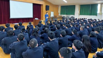1限、体育館にて全校で総体壮行会・学年集会が行われました。