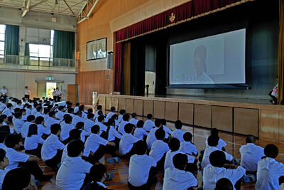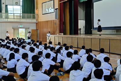 薬物が身体に与える影響や被害、また、専門官としての体験談から、トラブルや犯罪に巻き込まれないためのお話をしていただきました。最後に本校生徒からの質問にも答えていただきました。