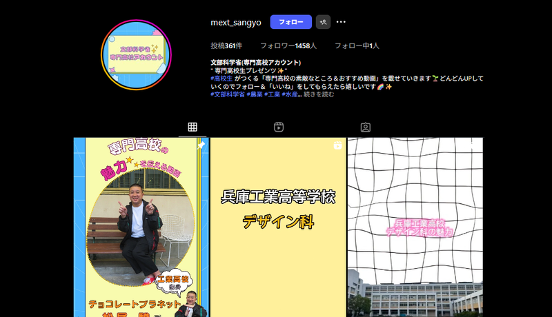 文部科学省のインスタ(専門高校アカウント)に紹介動画が載ってます。