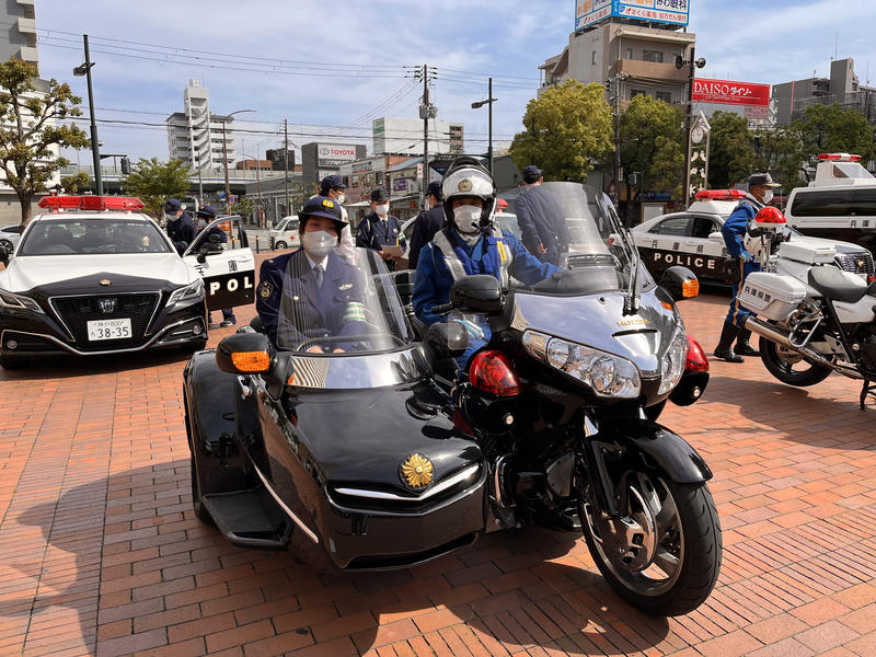 セレモニー後にパトカーと白バイのサイドカーに分かれて乗り込み、パレードにも参加させてもらいました。
