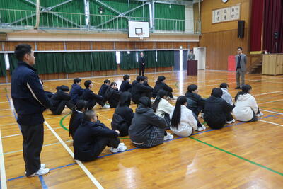 【行事】3学期始業式 01/08 1月8日(木)3学期始業式を行いました。 まず、校長先生から今年が午年ということで「塞翁が馬」を題材に、何事にも落ち着いて目の前のことに力を尽くしましょうというお話がありました。その後、全員で元気に校歌を歌い3学期がスタートしました。 【バドミントン部】初打ち 01/06 2026年バドミントン部の初打ちは姫路工業との合同練習でした。 6日(火)には毎年恒例の家島神社へ参拝をして、今年の抱負を語りました。 代表してキャプテンがこの1年を占うおみくじをひいたところ「小吉」。急がず正直に働いていると幸福が訪れるとの内容でした(何事もコツコツと) 最後の総体を迎える1年、部員一丸となって頑張っていきます! 【ウエイトリフティング部】先輩が練習に来てくれています 2025/12/26 冬休みの練習に部活OB3名が来てくれていました。それぞれ大学で競技を続けている先輩たち。 大学生の冬休みも何かと忙しい中、こうやって後輩のために時間を割いてくれる素敵な先輩です。良い伝統が引き継がれています。部員2人も幸せですね。 【音楽同好会】クリスマス演奏会 2025/12/24 12月24日(水)放課後、音楽同好会がクリスマスコンサートを開催してくれました。演奏会には音楽同好会のメンバーの他に「音楽Ⅱ」選択生徒や2,3年生の有志、そして先生方が参加してくれました。 演奏会に向けて、生徒も先生も貴重な時間を割いて熱心に練習してくれており、その演奏はとても素晴らしいものでした!こうやって一つのイベントを生徒と先生が一緒になって創り上げ、盛り上げてくれる家島高校、ほんとに素敵な学校です! 音楽同好会、出演してくれた生徒の皆さんと先生方、演奏に足を運んでくれた生徒の皆さんと先生方、素敵な時間をありがとうございました! 【行事】2学期終業式 2025/12/24 12月24日(水)2学期終業式を行いました。 校長先生からは、年越しの「節目」に今年の振り返りと来年の目標を立てよう!という話があり、生徒指導部長の先生からは、冬休みには自ら考えて動く「考動」を意識して自律した生活を送りましょうとのお話がありました。 イベントも多い冬休み、安全に楽しんで、始業式に笑顔で会いましょう! {{item.Topic.display_title}} {{item.Topic.display_publish_start}} {{item.Topic.display_summary}} もっと見る